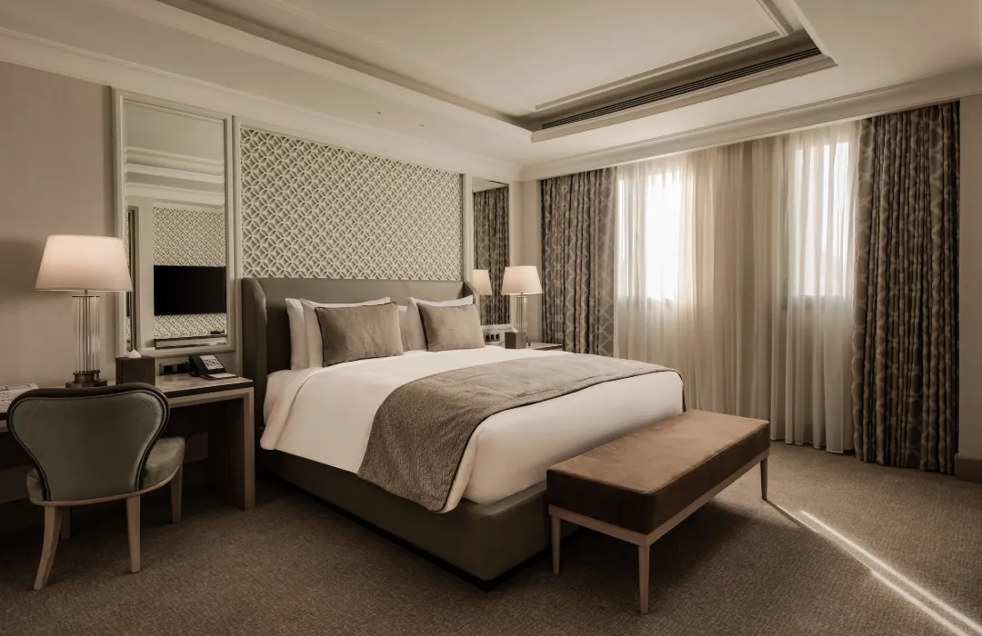 Experience unmatched elegance and comfort at Giza Palace Hotel & Spa. Our rooms range from 53 to 319 sqm, offering a luxurious haven that blends sophistication with comfort. With refreshing interiors and meticulous attention to detail, every space offers refined elegance and a perfect retreat for relaxation.
